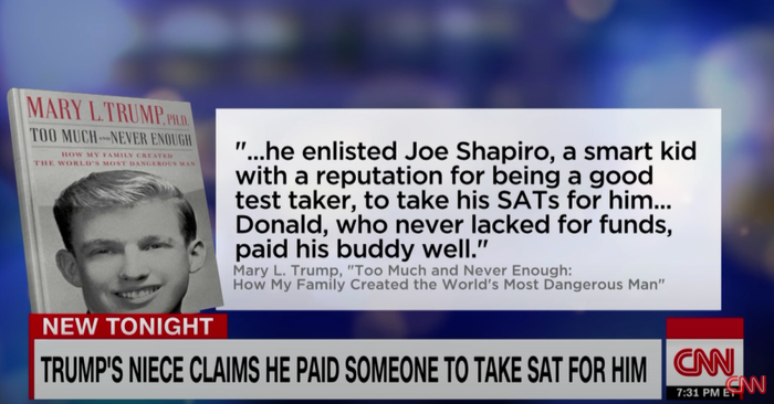 书中爆料说,特朗普请擅长考试的Joe Shapiro代考SAT。(图片为CNN截屏)