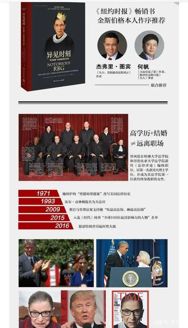 2014年,80岁的她不满意最高法院的判决,发表了35页的,没想到从此一炮而红,成为了年轻人追捧的偶像。后来,她索性出了一本书《异见时刻:声名狼藉的金斯伯格大法官》,女性成长的力量源泉。点击下面的链接可以购买。