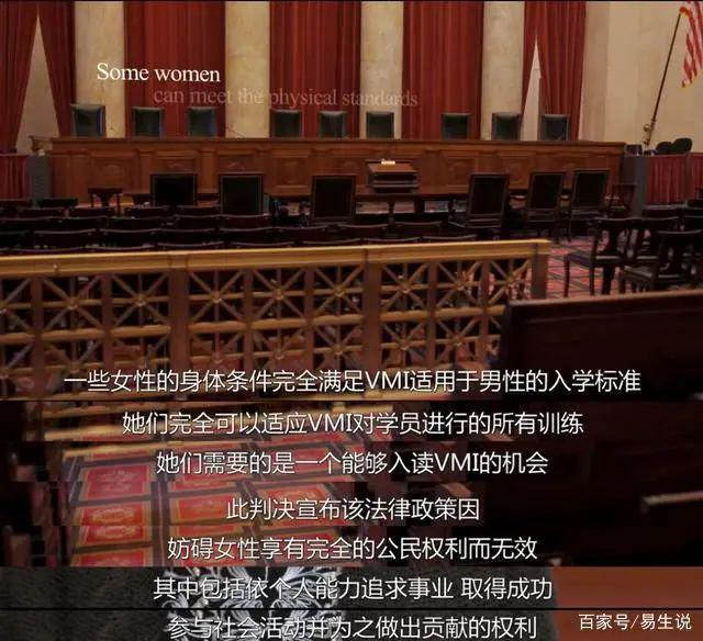 1996年,有一个女生想要读一所男性军事学院vmi,遭到拒绝后,她提出上诉,案子到了最高法院。