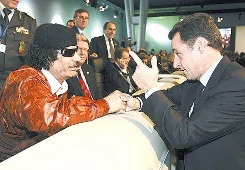 ▲萨科齐与卡扎菲(左)他们认为,2007年大选前,萨科齐不仅拿了贝当古夫人的钱,还与卡扎菲进行了接触。卡扎菲希望能够通过法国解除对利比亚的制裁,并向利比亚出售军火,而卡扎菲会提供5000万欧元的政治献金。然而,萨科齐在2011年对卡扎菲发起了军事打击,利用内战消灭了卡扎菲政权,卡扎菲本人也死于非命。对此,卡扎菲的大儿子赛义夫非常愤怒,他向媒体说出了萨科齐接受资助的情况,揭开了“利比亚黑金案”的内幕。