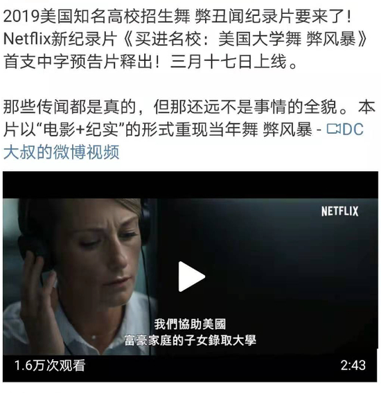 今天,小编无意中刷到一条微博——纪录片《买进名校:美国大学舞弊风暴》将在3月17日上线Netflix。