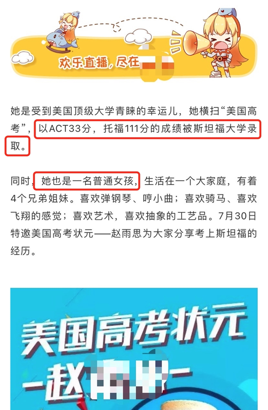 ▲普通女孩Yusi Zhao直播海报赫然写着的“美国高考状元”,现在回看可谓是讽刺至极。丑闻曝光后没多久,Yusi Zhao就被斯坦福大学开除,并在2019年3月30日搬离了校内宿舍。两年后的今天,Yusi Zhao已经消失在了人们的视野。
