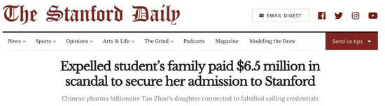 ▲图源:斯坦福时报“韭菜”是真“韭菜”,毕竟到斯坦福兜里的只有50万美元,但这650万美元对于赵涛来说,不过是“洒洒水”。在丑闻被曝光的2019年,赵涛的身家仍有310亿人民币。