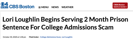▲Lori和两位女儿这些试图越过法律寻找捷径的人,无不受到了法律的制裁。2020年8月21日,Lori被判入狱两个月、罚款15万美元,还需完成100个小时的社区服务,而她的丈夫Mossimo则被判处5个月的监禁,250个小时的社区服务和25万美元的罚款。