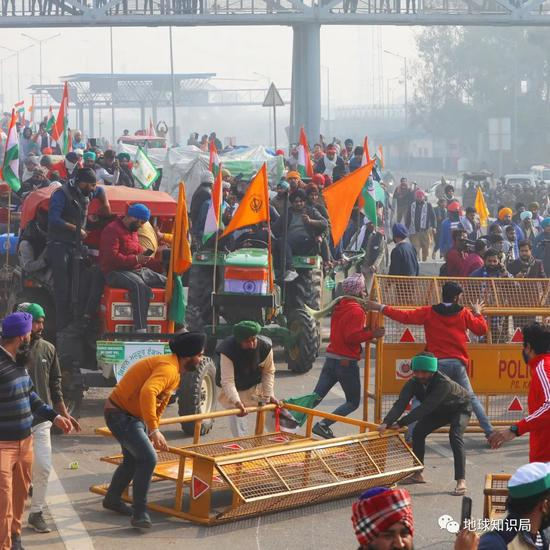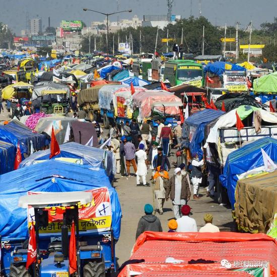 20万辆卡车和拖拉机涌入新德里,其中相当部分突破了警察用混凝土桩、集装箱、铁丝网封锁的道路,并在新德里安营扎寨。新德里农民的抗议营地中有发电机、临时厨房和补给仓库,为可持续抗议提供源源不断的后勤保障。