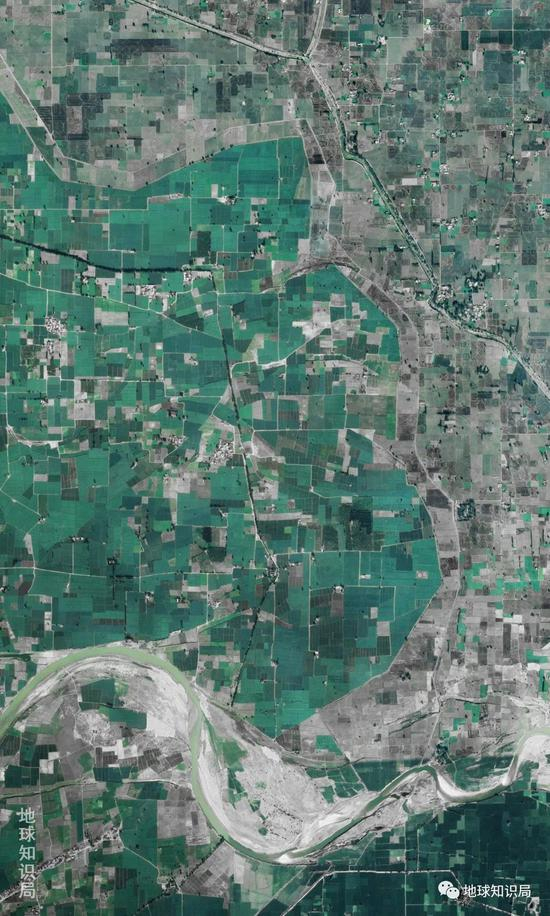 萨特莱杰河从印度旁遮普(右)流入巴基斯坦旁遮普(左)