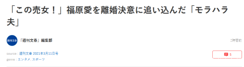 据日媒《周刊文春》称,福原爱长期遭受男方一家的言语暴力,让她承受巨大压力暴瘦10公斤。