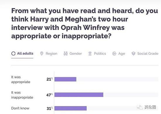 图:天空新闻那英国人是怎么看的呢?今天,英国市场研究公司YouGov就对看完节目后公众对梅根哈里的态度展开了调查。