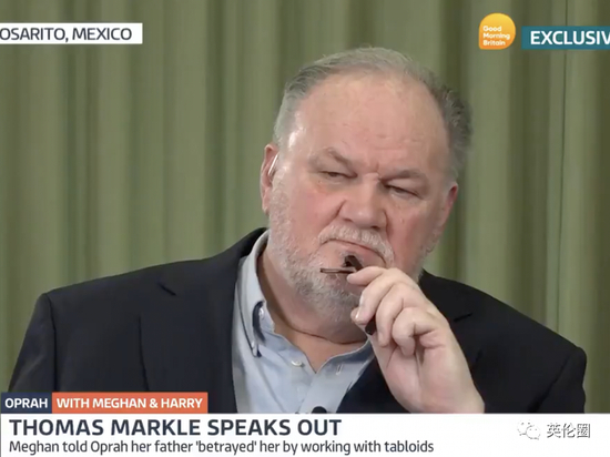图:People梅根的爸爸托马斯·马克尔在今早的《早安英国》节目上接受了名嘴皮尔斯·摩根的连线采访。