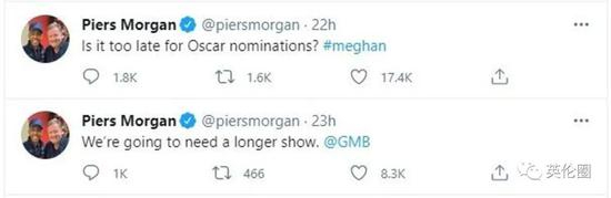 当然也有直面吐槽梅根的——英国名嘴皮尔·摩根(Piers Morgan)说“她说的我一个字儿都不信。。。如果她读给我天气预报,我也不相信。。。这是对女王及王室的背叛”还在节目中途就离开了摄影棚。