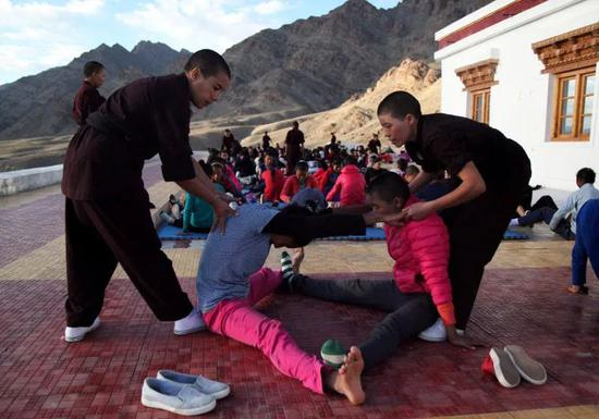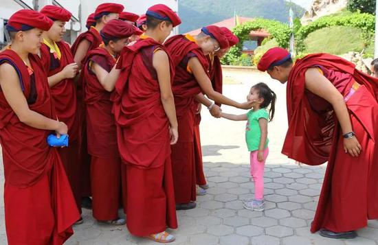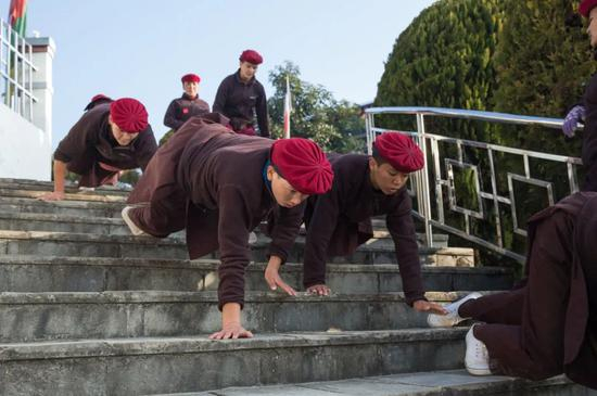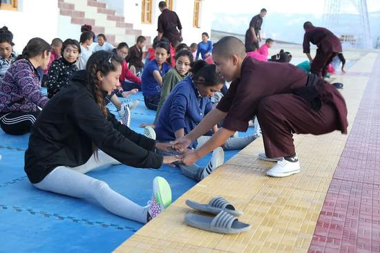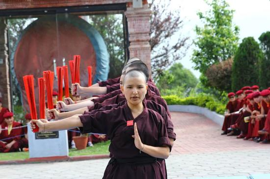 于是她们成为宗法制佛教寺院体系中唯一女性教团,也是喜马拉雅山脉唯一练武的尼姑,除了地位抬高与和尚齐平,在冥想间隙功夫之外,她们还有很多工作要做。古老艺术弧光照耀,她们平时会编舞排舞,排练戏剧,甚至自己创作歌曲。生活上,她们学习安装水暖电器,外语和生活技能。