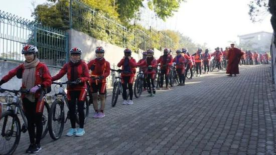 为了调查人口贩卖,尼姑们全程靠骑行。尼姑们分成10个小组按小组活动,一起做饭骑车。