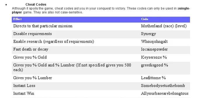 许多国内玩家从《魔兽争霸3》的作弊码第一次接触“AYB”。打开聊天框输入“allyourbasearebelongtous”,便能立即获得当前对局的胜利;反之输入同样出自《零翼战机》的“someonesetupusthebomb”,就会直接战败。