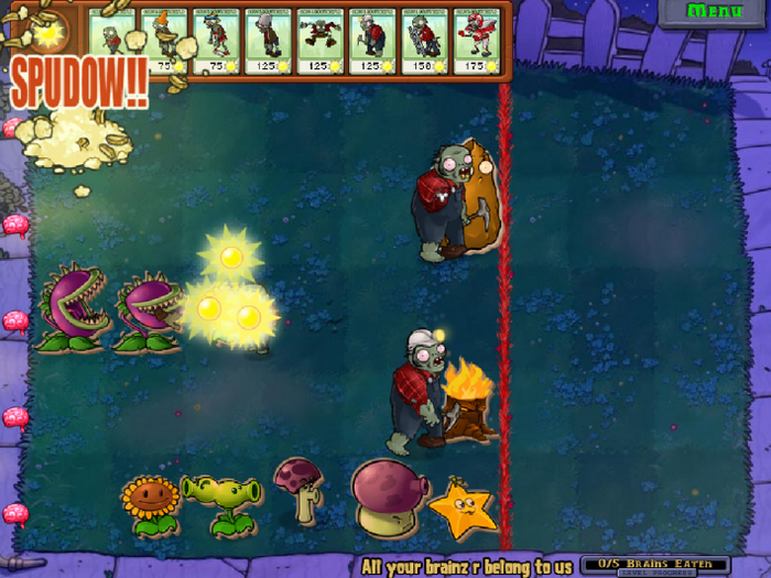 受众广泛的《植物大战僵尸》,也把扮演僵尸的某个关卡命名为“All your brainz r belong to us”(你的所有脑子都属于我们)。