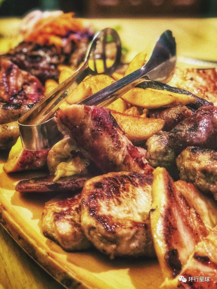 来到北马其顿,一定要尝尝特色的马其顿烤肉,在北马其顿最古老的建筑改建的餐馆里,点了培根、牛排、香肠、鸡胸、汉堡排、蔬菜和薯条的综合烤肉拼盘,这样的伙食让我深信北马其顿人一定血气方刚,不拘小节。