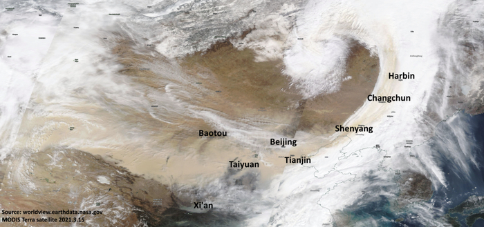 ●worldview.earthdata.nasa.gov 2021年3月15日MODIS Terra卫星影像 / 绿色和平提供
