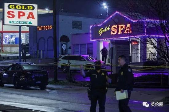 图:天空新闻一小时后,警方又接到发生亚特兰大东北部的金温泉店铺(Gold Massage Spa)的武装抢劫案,店内发现3具被枪杀的女性尸体。