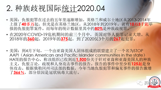 英格兰和威尔士地区从2013-2014年上报了40多万起,但光是在英格兰地区,从2018年到2019年,就有10万3千起举报的仇恨犯罪案件。