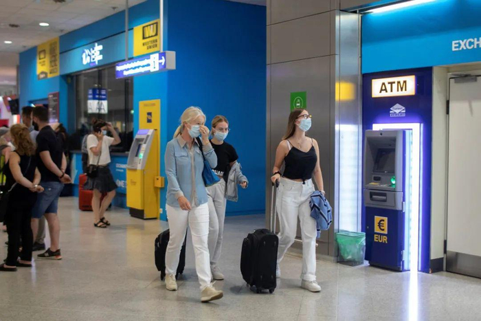 2020年7月16日,在希腊取消了疫情防控的入境限制之后,一批来自英国的游客到达雅典国际机场