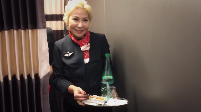因为一生都没有工作过,想要体验工作的感觉时,只能在法航的飞机上穿上空姐制服,为大家端茶送水五分钟。