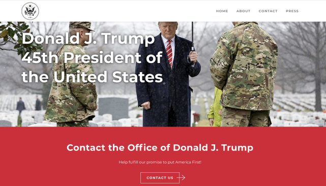 在这个和白宫网站很有几分相似的网站上,以最瞩目的字体写着“唐纳德·特朗普,美国第45任总统”。