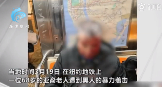 3月19日,一名68岁的亚裔老人在纽约地铁上遭到黑人的暴力袭击,被打得头破血流,有目击者指出,这名黑人边攻击老人边喊:“你是亚洲人。”