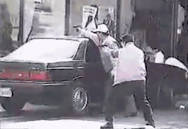 打完之后,刘先生跟随在他们后面准备报警,结果走到另一家店铺门口,两名非裔男子对亚裔夫妇又是一顿拳脚相加。