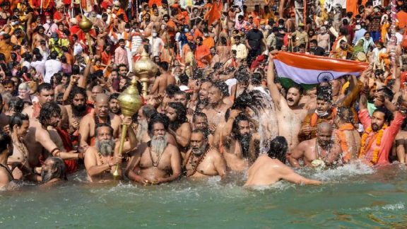 |图/4月14日,近百万人集聚恒河,庆祝大壶节。72小时感染超2000人。