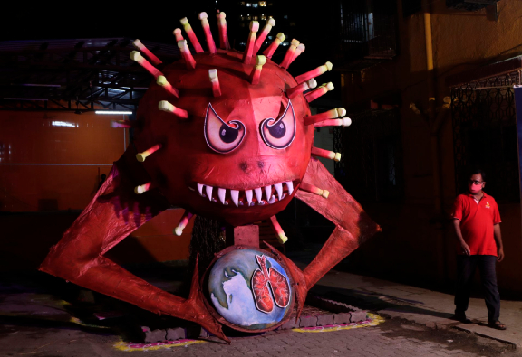 印度目前流行的新冠毒株,是B.1.617,同时携带着两个重要突变(E484Q 和L452R)。虽然这个双重突变在去年就在印度出现,目前已经流传到其他国家,但是在今年1月时,此毒株在印度仍然还不常见。但是到了4月份,在印度所测序鉴定的病毒样本中,这个双突变的比例已经达到了52%。在孟买等目前疫情严重的地区,这个比例更是高达60%。很显然,这个双重突变病毒株是目前印度疫情的推手。有数据表明,这两个突变可以增加病毒的感染力,也能增加病毒的免疫逃逸能力,不但可以再次感染,对疫苗的保护效果也会有影响。同时携带这两个突变,可能让新的病毒株开了挂。之前印度可能因为大部分感染者都是无症和轻症,虽然抗体检测推测感染率达到了50%,但是所报道的确诊人数和死亡率并不高。与上一波疫情相比,目前印度的医疗系统频临崩溃,说明新的突变株致病能力可能强于之前的毒株。