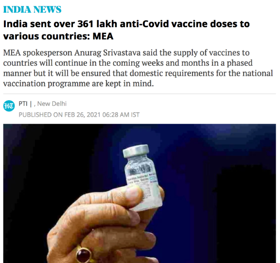 从某种意义上来说,印度确实有自信的资本。印度血清研究所是目前全球最大的疫苗生产商,每年生产15亿剂疫苗,其中80%用于出口,产品行销165个国家和地区,年收入超8亿美元。今年1月,印度血清研究所表示有能力在2021年生产15亿剂新冠疫苗,并计划在年底前将年生产能力提高到25亿剂。世界卫生组织主导的“新冠肺炎疫苗实施计划”(COVAX),将在今年一、二季度向145个国家提供3.37亿剂新冠疫苗,其中2.4亿剂就来自印度血清研究所。“美国顶尖科学家说,印度推出的新冠疫苗“拯救了世界””印度的“疫苗外交”,也确实得到了国际上的赞誉,在印度的媒体上,可以看到这样的报道。都已经达到了拯救世界的高度,印度飘得更高了。