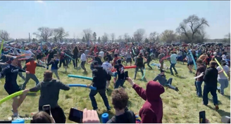 2021年4月24日,美国境内GPS坐标为“40.858689,-96.784136”的一块草坪中,聚集了上千位美国民众。他们或身着奇怪的服装,或手持怪异的道具,表情古怪,气氛紧张。