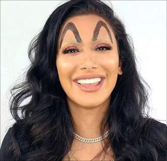 然而十分荒诞的是,本意是嘲讽的麦当劳眉却意外成为了最狠的新趋势。如果一个辣妹的头上没有一对金拱门,就像是出门没有穿内裤,不用别人说什么自己就先尴尬了。“我在INS上学习化妆,我现在是我们高中最抢眼的姑娘,害羞的男生甚至不敢直视我。”“只是我妈妈问我是不是去麦当劳修的眉毛,这让人即伤心又沮丧。”一位叫佩吉的女孩分享道。