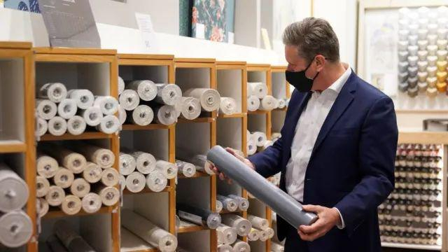 工党领袖凯尔·史塔默在调查墙纸的价格(图源:英国国家通讯社)