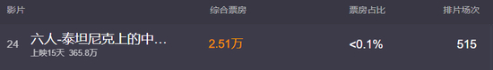 4月16日,悄悄上映了一部纪录片《六人:泰坦尼克上的中国幸存者》(以下简称《六人》)。说“悄悄”,是因为这部片子上映前的宣发没啥声响儿,公映后的排片又少得可怜。到上月底,上映半个月的《六人》的排片场次仅500多场,票房也只有300多万。