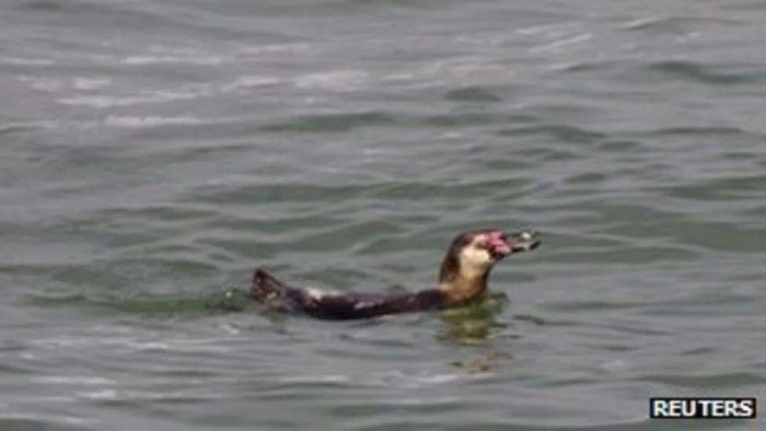 大部分时间里,这只企鹅就在东京的河湾里游荡。图源:路透社