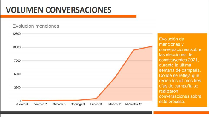 所有人都注意到了这次选举令人意外的低投票率:不要说与去年十月决定宪法命运的那次公投相比,这次选举总参与率仅略高于43%,其中立宪会议选举参与率为41.5%。这似乎意味着选民中正在浮现出另一种懈怠和冷漠:对网络关键词的分析表明,有关立宪会议以及选举的讨论迟至5月10日——也即投票日前五天——才出现抬头迹象,参与相关讨论的大多数推文内容都是在呼吁大家出门投票,但5月15日和16日,在网友有限的传上社交网络的投票现场照片当中,空空荡荡的投票站仍占到大多数。