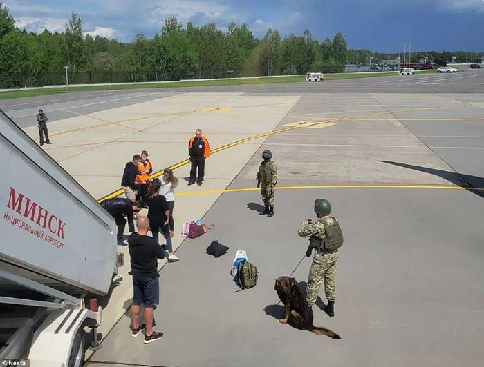 乘客们询问发生了什么事,普拉塔塞维奇颤抖着说:‘死刑在这里等着我。’经过了漫长的安检与甄别之后,大部分旅客允许回到飞机上,普拉塔塞维奇和女友索菲亚被扣留,另外还有三名不知名的乘客留了下来。
