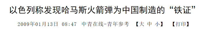 以色列国防部曾误以为中国在给哈马斯提供武器支援,因为以色列在收缴的敌方火箭弹里,发现了“山东莱阳钢管厂”的标识。