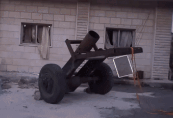 这时它就不再是简单的煤气罐了,被称为地狱大炮(hell cannon),据说是开发者自己起的名字,制作方式已经属于民间绝学范畴。先把罐体里面的气体放空,然后焊接尾翼,切开注入炸药之后再封口加引信,每一个步骤都保证是纯手工完成。就像一种创造力的异化应用,这足以证明没事学点焊接手艺,在战时绝对是可以混口饭吃的。