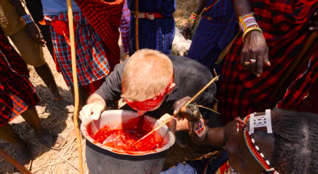 毕竟血腥玛丽里面没有血,而肯尼亚马赛族人的这杯牛血饮料里面几乎全是新鲜滚烫的老牛鲜血。