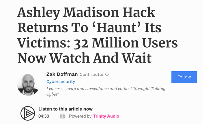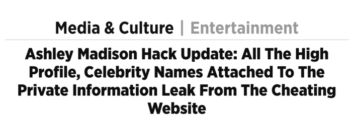 Ashley Madison3200万用户再次受到困扰。Ashley Madison是一家帮助已婚人士寻找外遇的社交网站。他们的宣传口号是:“人生苦短,有外遇。”