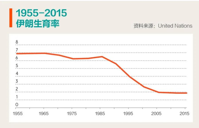 1980年两伊战争爆发,伊朗采用人海战术弥补了技术和军备上的缺陷。战争初期,在霍梅尼的鼓励下,伊朗一度迎来婴儿潮,五年内的生育率保持在6.2至6.5的高位。