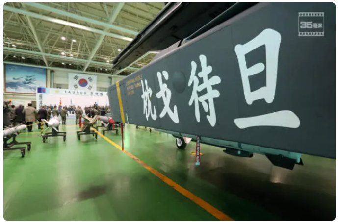 此前,韩国从德国引进了一批远程巡航导弹,为了表示重视,他们还在导弹上 印了汉字:枕戈待旦。
