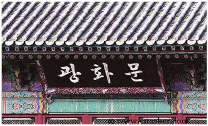以光化门为背景的韩剧镜头。光化门是朝鲜王宫景福宫的正门,“光化门”周围集中了韩国主要的政治部门,可以理解为韩国的天安门。此前,韩国文物厅通过文物委员会会议决定,摘下韩文牌匾,复原古代朝鲜时期制造的汉字牌匾。