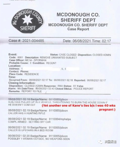 (当时的报警单,上面写着凯恩报警说切尔西要放火烧房子)