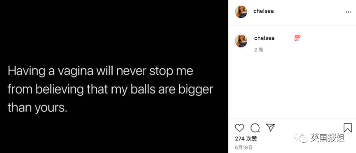 (“有阴道也不会让我停止相信自己比你更有种(蛋比你大)!”)
