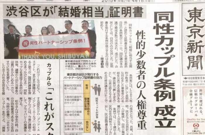 LGBT儿童的感受也要顾及2015年,东京涩谷区建立了同性伴侣登记系统,这被认为是日本维护LGBT权利的重要一步。在日本,“同性伴侣”关系并非婚姻,在法律上也没有意义,但它能够让同性伴侣在对方诸如生病住院等情况下,拥有配偶的权利。到今年一月为止,已有74个日本地方政府建立了同性伴侣登记制度,涵盖了日本33.4%的人口。3月,北海道札幌地方法院在日本首次同婚诉讼中宣判,“禁止同婚违反了宪法十四条的平等原则”。尽管日本政府表示,并不会因为一次地方法院的判决而承认同性婚姻,这一消息还是让很多关注这个议题的日本人感到欢欣鼓舞。