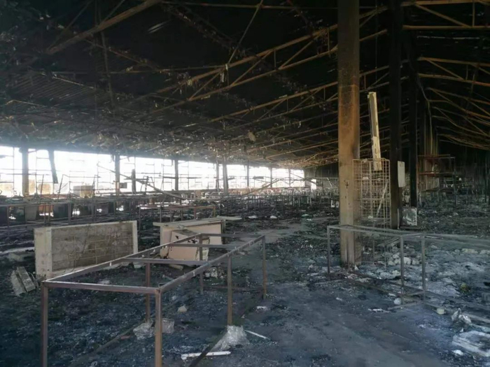 ◆王林(化名)在新堡市MADADENI工业区的工厂被烧。(采访者提供)