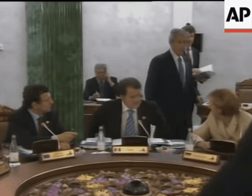 而小布什和默克尔最著名的一个“名面场”就是2006年八国集团峰会上,小布什的颈部按摩,吓了默克尔一大跳!