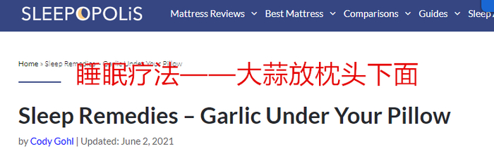 “如果不喜欢耳朵里有异物感,可将剥皮后的大蒜放枕头底下。牙仙般的睡眠仙子乘着芳香之气入侵你的大脑,伴你昏昏欲睡。”“醒来之后,把旧的大蒜扔掉,每晚换新。”